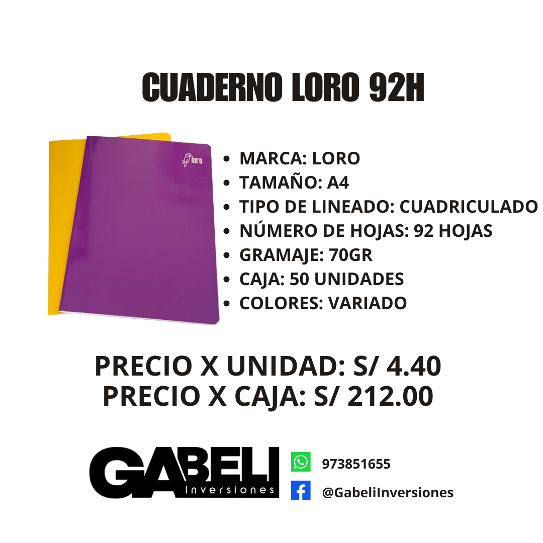 CUADERNO LORO 92 H